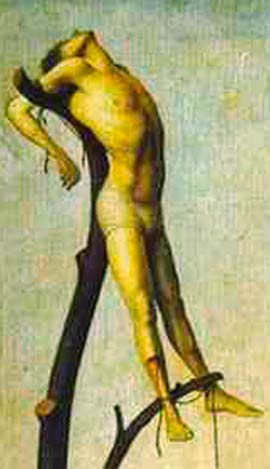 Le condamné ne peut plus alors se redresser et s'épuise rapidement. Les crucifixions sont un des grands thèmes dans l'histoire de la peinture. Il n'est donc pas question que je m'y lance. J'aimerais juste en choisir deux ou trois pour marquer le coup et que je choisis uniquement parce qu'elles ont quelque chose qui me surprend, que je trouve original, ou qu'elles ont un rapport avec des pages antérieures du journal. |