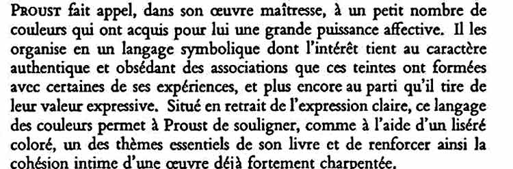 études le prouvent, la couleur chez Proust n'est pas créatrice de mémoire,